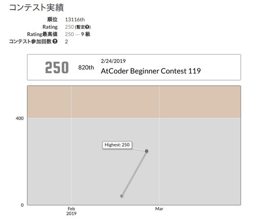 2回目の参加の結果は2完。 あああああ、ってなってましたが、パフォーマンスも順位も初参加の前回より上がっていたので、今回はC問題の難易度が高かったということでいいんですよね?ね? 各問題 A - Still TBD 単に、月の部分を引っこ抜いて4以下かどうかで…